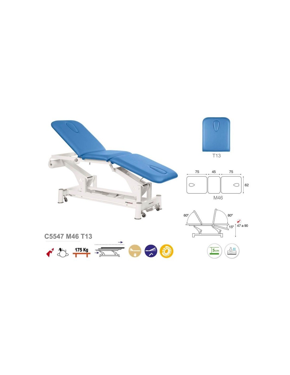 Camilla eléctrica 3 cuerpos Ecopostural, con Portarrollos y Tapón facial.